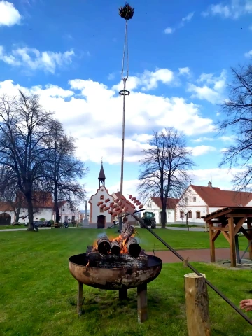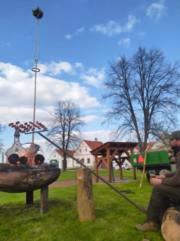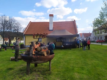 - Občerstvení: Na ohni se opékají špekáčky a pije pivo