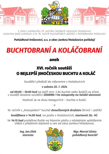 Každý, kdo v době konání Selských slavností do Holašovic zavítá, si jistě z bohaté skladby programu vybere a z akce si odnese nezapomenutelný zážitek.